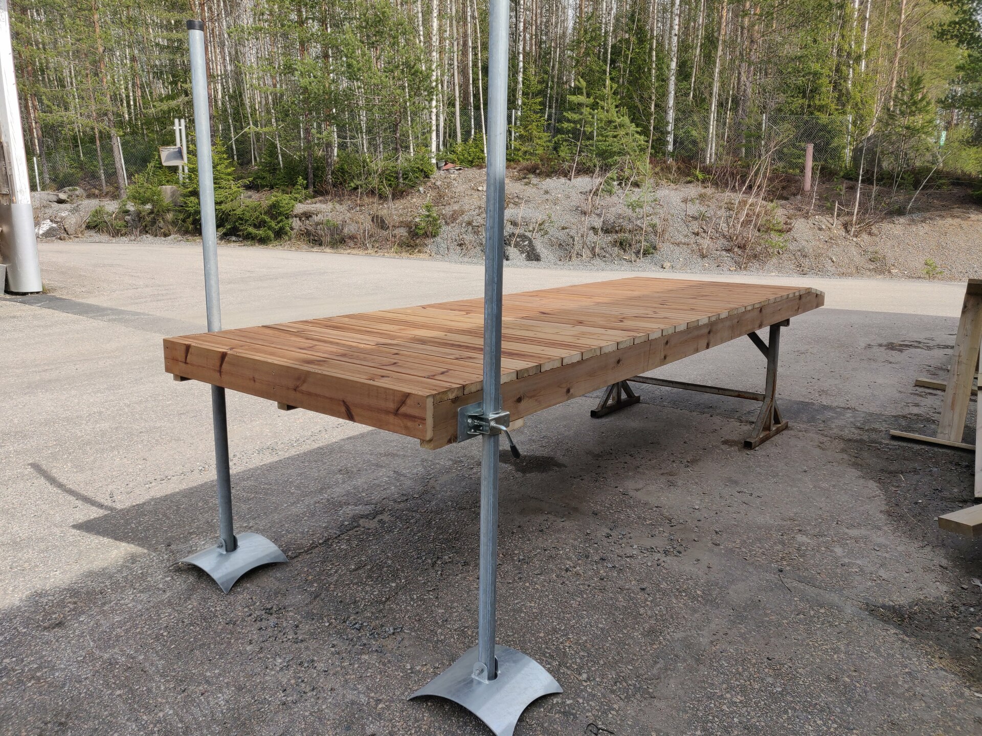 Valmistamme huippulaadukkaat Kaislatar pylväslaiturit. Pylväslaiturin etuna on vakaa keinumaton rakenne, laituri seisoo tukevasti pohjassa pylväiden varassa. Pylväs laituri on myös todella helppo asentaa käyttöön. Pylväissä on portaaton säätö joten se voidaan asentaa suoraan helposti ja kätevästi. Pylväslaituri soveltuu matalaan rantaan jossa on kova / kovahko pohja.